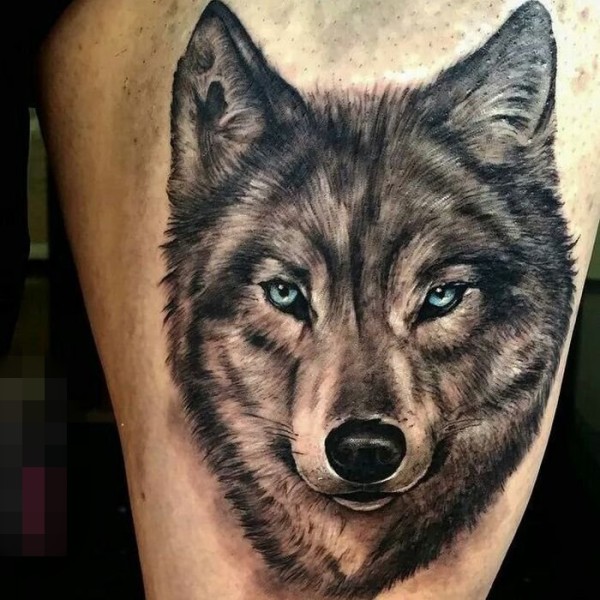 男生喜爱的凶残霸气的点刺技巧几何线条狼头纹身图案