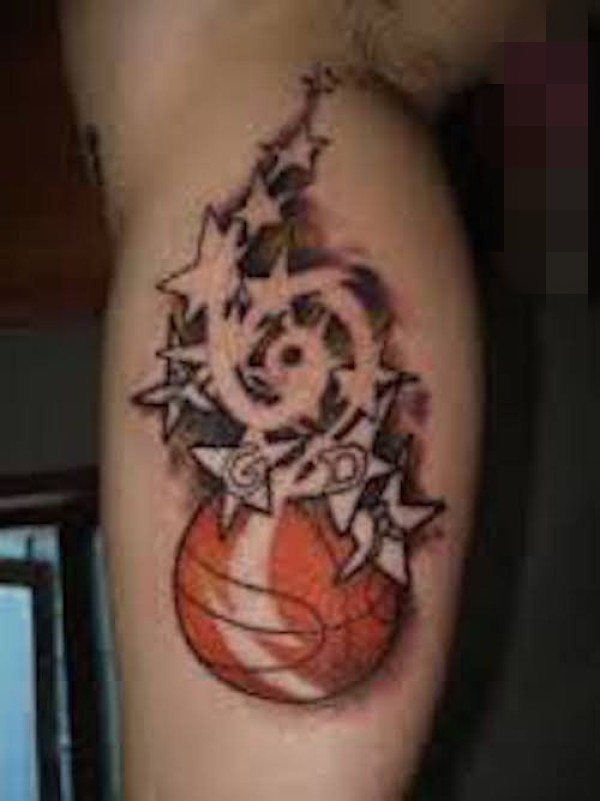 多款关于篮球的黑色素描点刺技巧创意篮球纹身图案