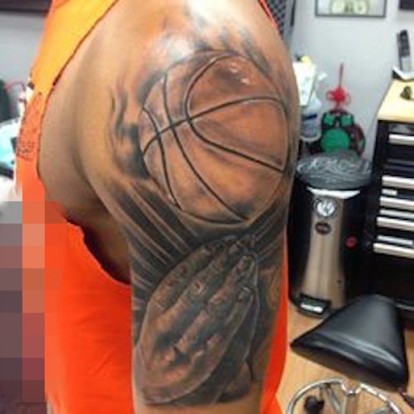 多款关于篮球的黑色素描点刺技巧创意篮球纹身图案