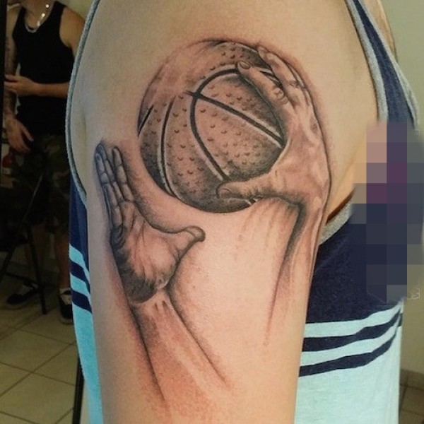 多款关于篮球的黑色素描点刺技巧创意篮球纹身图案