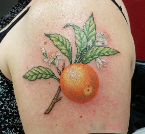 女生手臂上彩绘技巧植物素材香橙树枝纹身图片