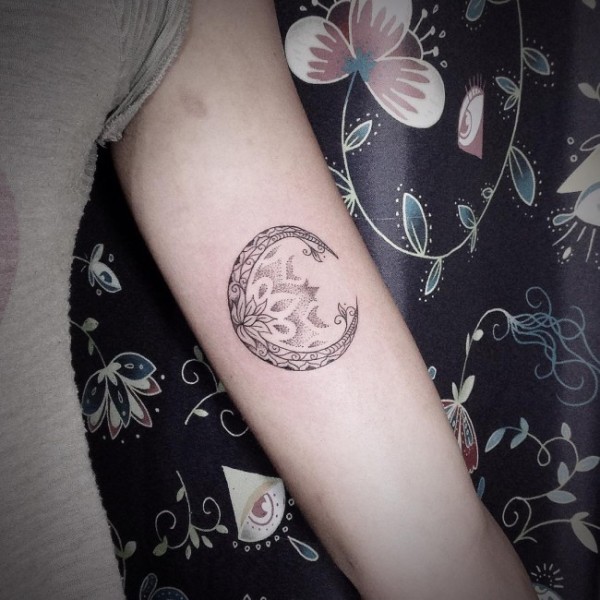 点刺黑色的神秘月亮梵花手臂纹身图案