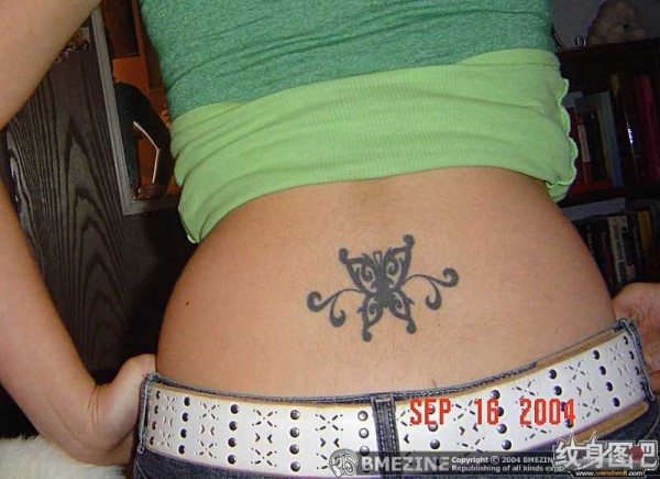 分享一款腰部时尚性感的蝶恋花纹身图案_腰部纹身图案大全_纹身图吧