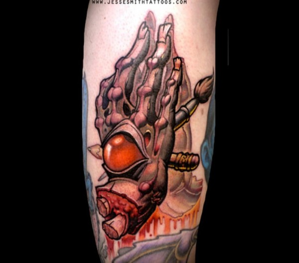 手臂old school令人毛骨悚然的彩色怪物手纹身图案