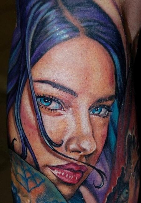 惊艳写实风格七彩美女肖像手臂纹身图案