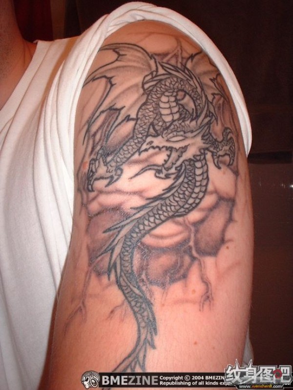 龙纹身手稿_一组老传统黑灰龙手稿纹身图案