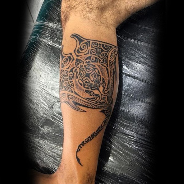 小腿黑色的部落饰品个性纹身图案