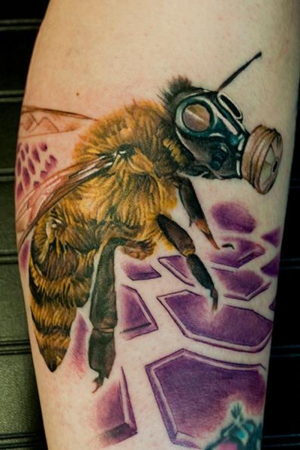 独特设计的彩色防毒面具蜜蜂手臂纹身图案