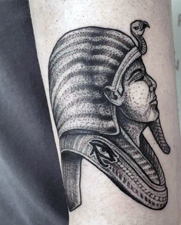 雕刻风格黑色点刺埃及法老肖像手臂纹身图案