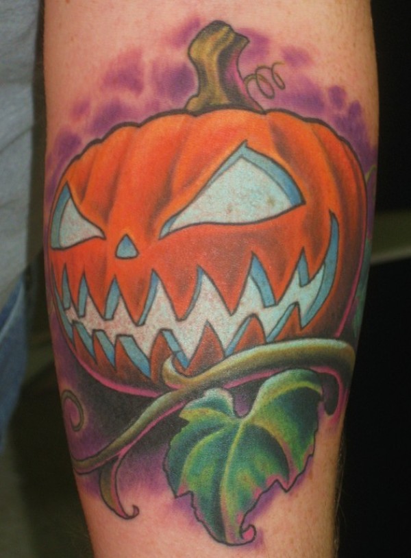 卡通风格的万圣节南瓜彩色手臂纹身图案