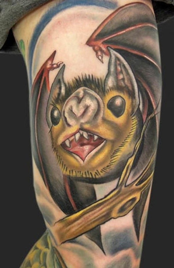 有趣的卡通彩色吸血鬼蝙蝠手臂纹身图案