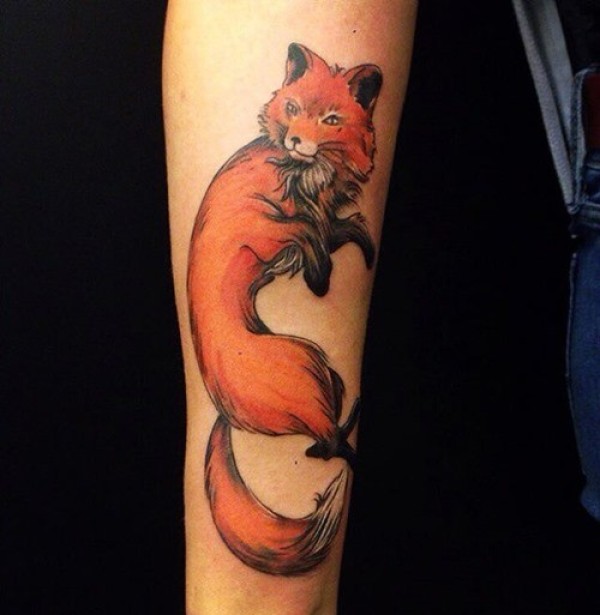 手臂自然的卡通狐狸彩色纹身图案