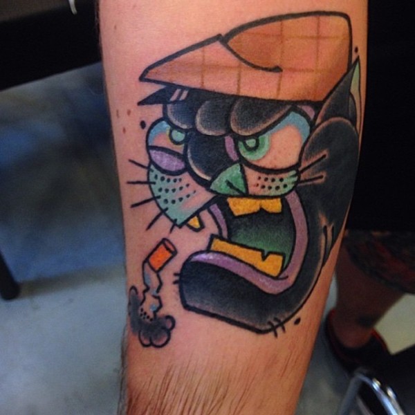 惊人的old school卡通色吸烟黑豹手臂纹身图案