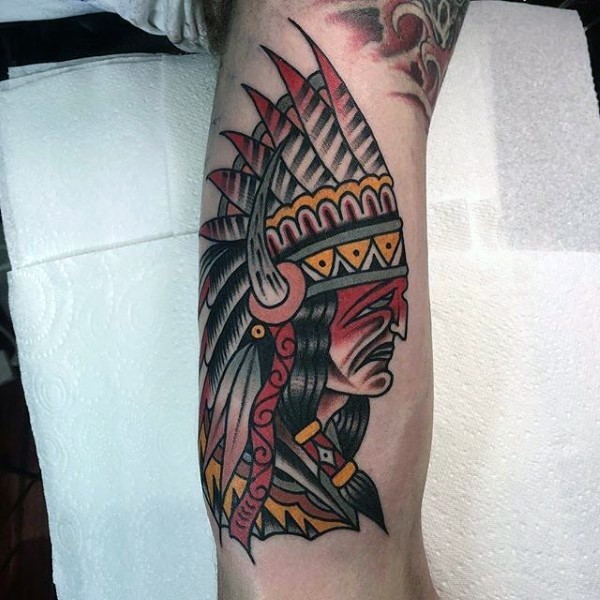 old school彩色的印度人像手臂纹身图案
