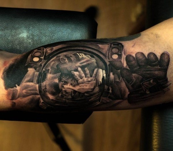 令人毛骨悚然的华丽宇航员黑色手臂纹身图案