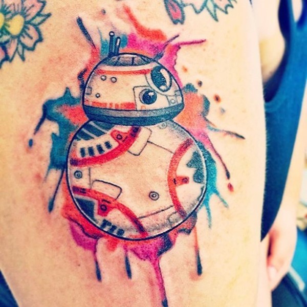 手臂水彩泼墨的机器人个性纹身图案