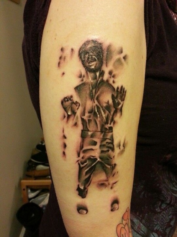 手臂独特设计的黑色奇怪人像纹身图案