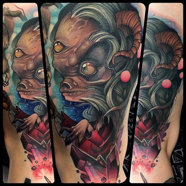 手臂卡通的彩色爬行女巫纹身图案