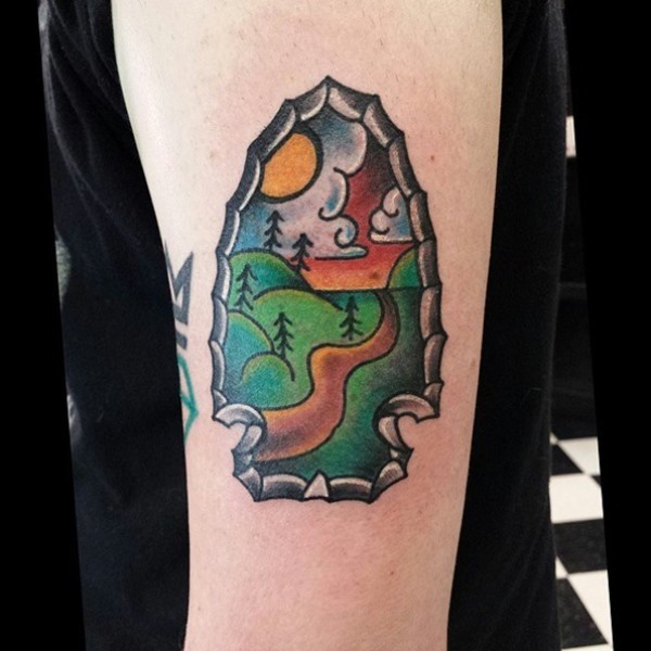 手臂可爱的古代武器与乡村公路纹身图案