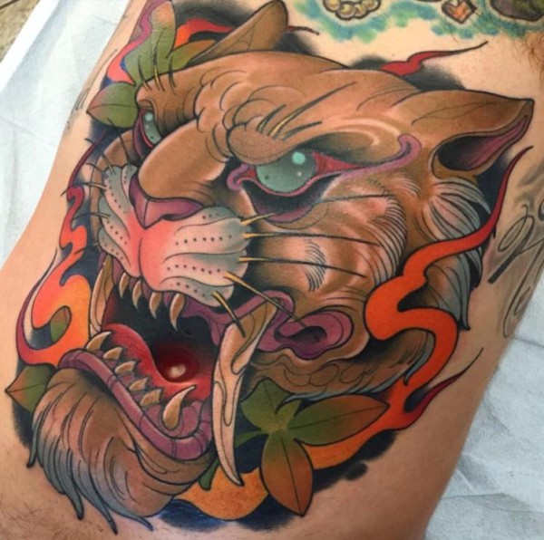 手臂亚洲风格的彩色邪恶幻想虎纹身图案
