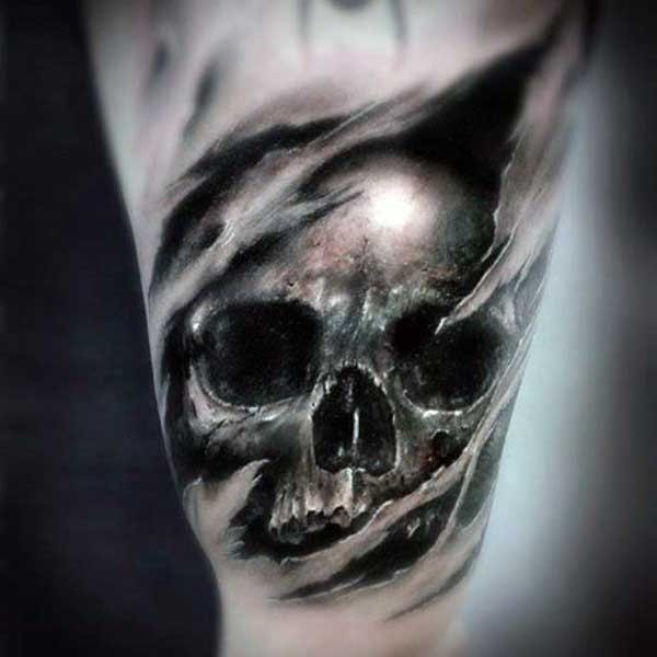特别逼真的彩色骷髅手臂纹身tuan