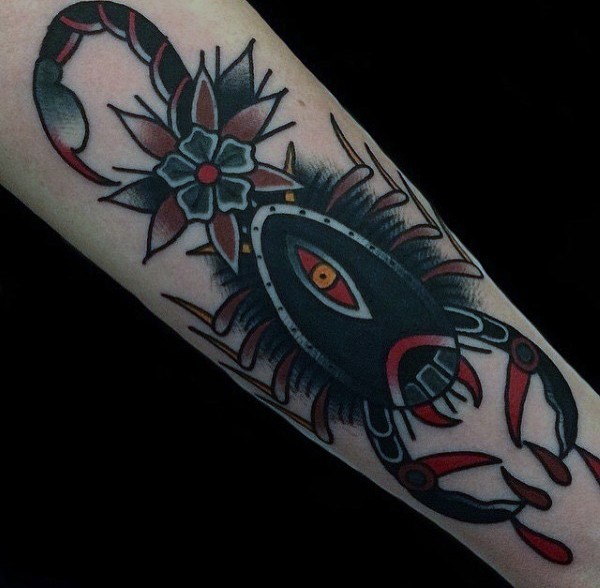 old school手臂神秘的手绘彩色蝎子纹身图案