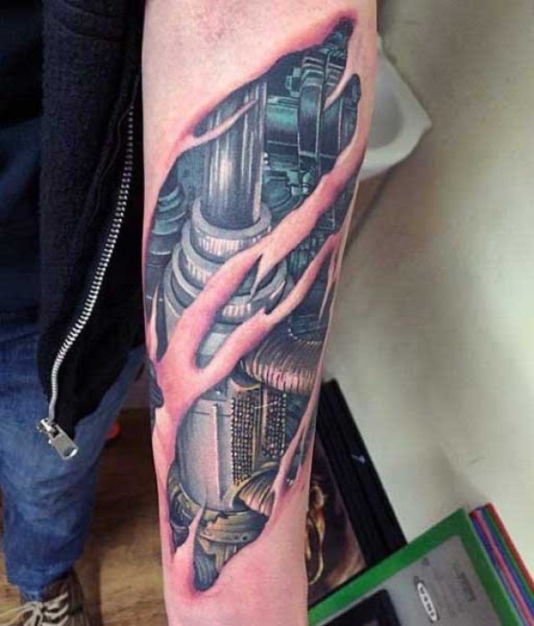 华丽非常逼真的生物力学机械手臂纹身图案