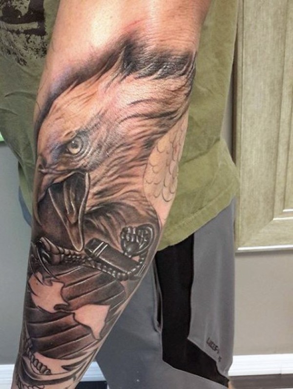 神奇的黑白鹰手臂纹身图案