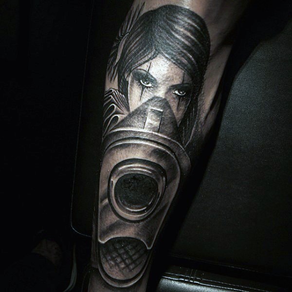 手臂很酷的黑色女子和手枪纹身图案