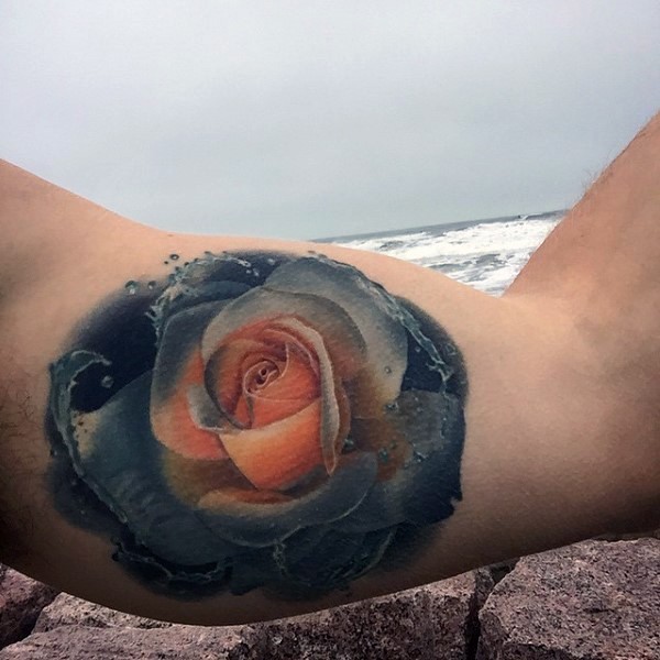 手臂魔幻的彩色写实玫瑰与水纹身图案