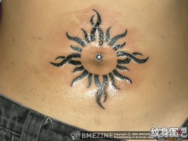 肚脐上的黑色太阳纹身