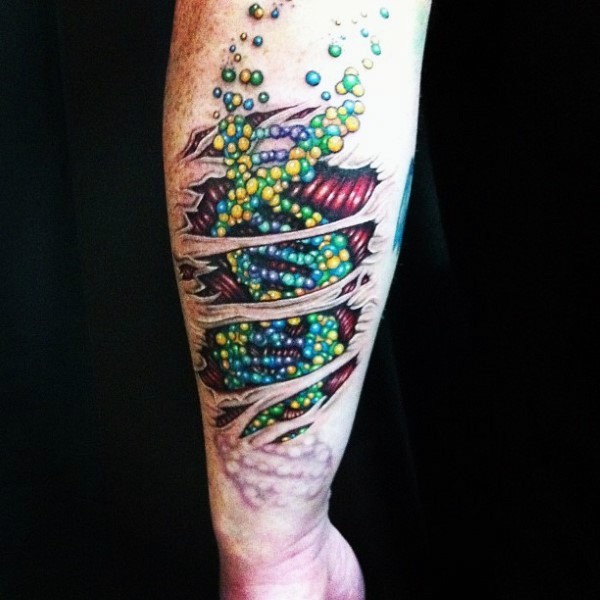 手臂撕皮彩色的DNA符号纹身图案