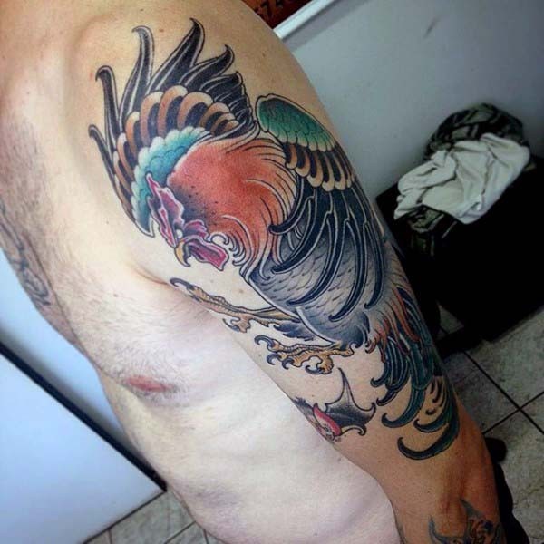 彩色邪恶的战斗公鸡手臂纹身图案