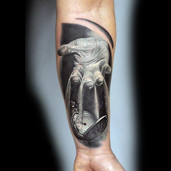 独特设计的彩色手与时钟手臂纹身图案