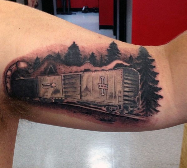 有趣的设计黑色火车树林手臂纹身图案