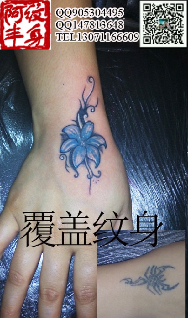 手部个性盛开莲花纹身图片_植物纹身图案大全_纹身图吧