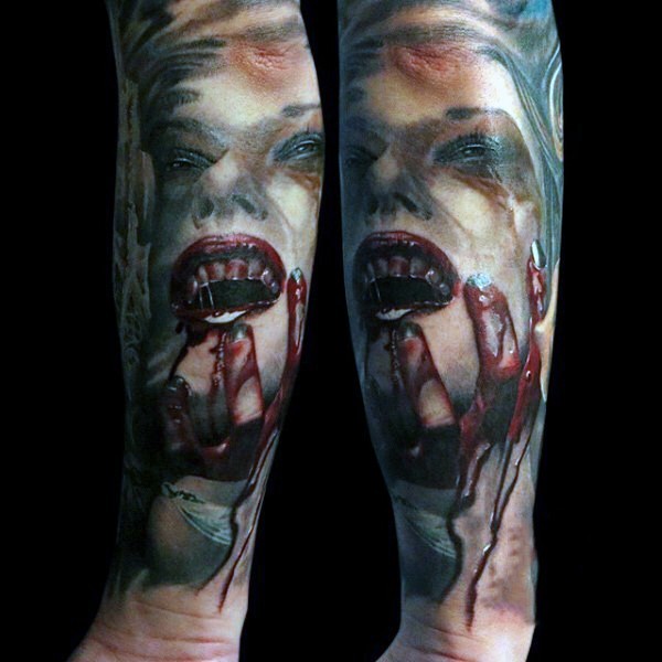令人印象深刻的恐怖血腥吸血鬼女人手臂纹身图案
