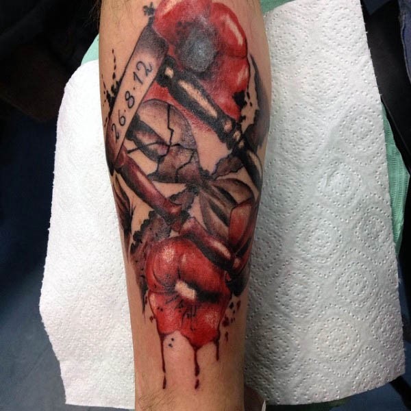 漂亮的彩色沙漏与数字鲜花手臂纹身图案