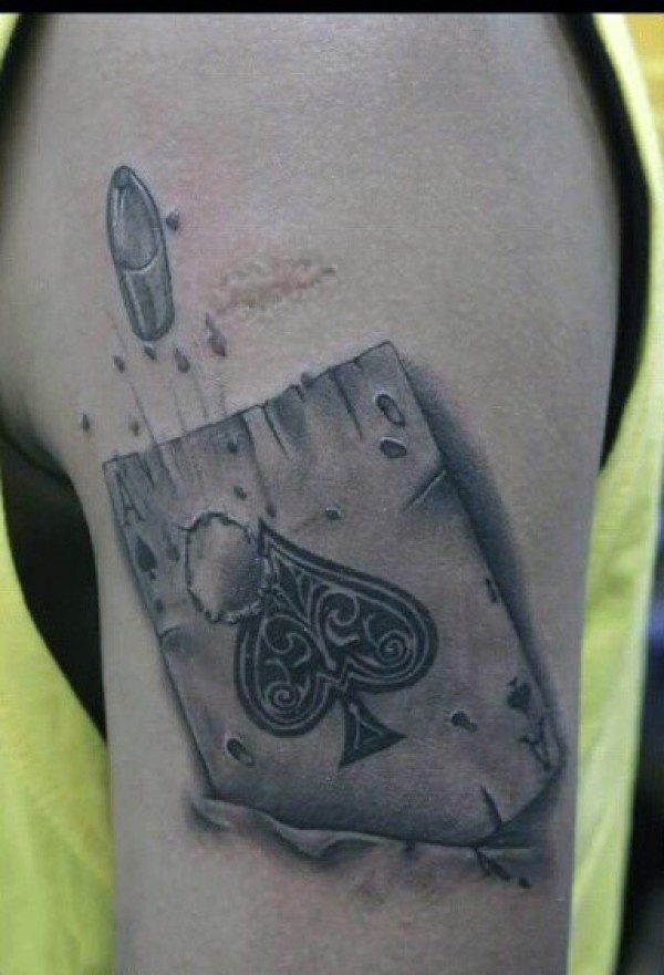 小小的黑色子弹和扑克牌手臂纹身团