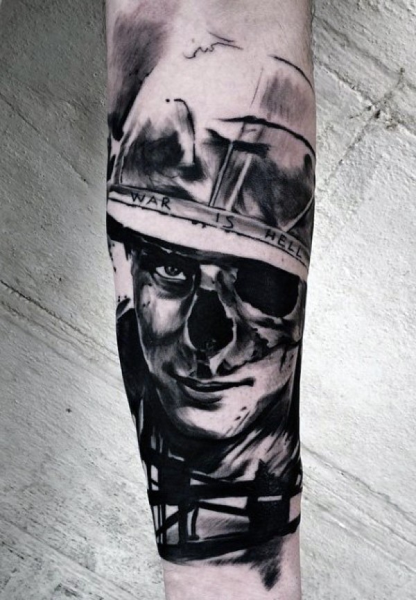 手臂神秘的战争主题士兵肖像纹身图案
