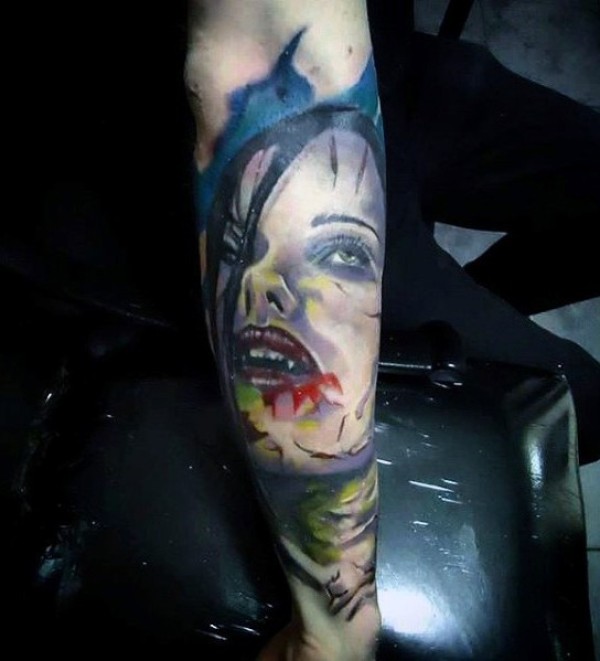 手臂简单设计的彩色血腥吸血鬼女子纹身图案