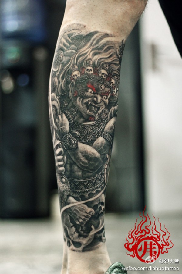 花腿纹身--一组大黑腿纹身图案作品欣赏