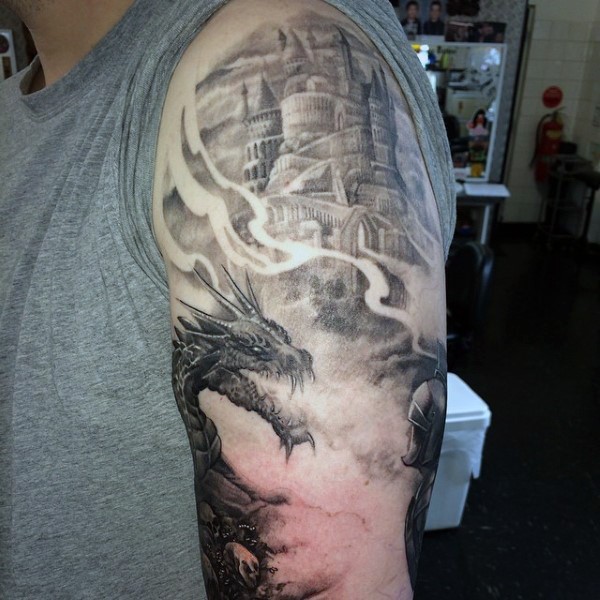 龙纹身手稿_一组老传统黑灰龙手稿纹身图案