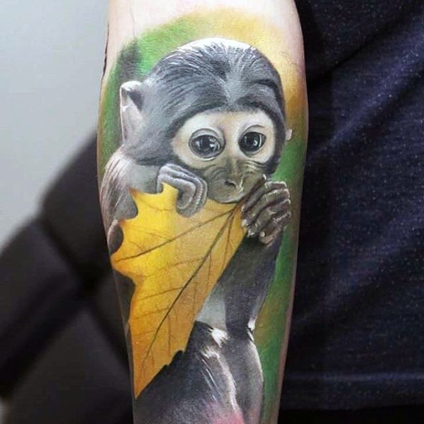 非常可爱逼真的彩色小猴子手臂纹身图案