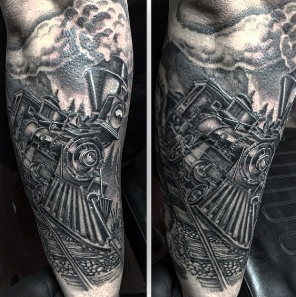 华丽的黑白西方火车手臂纹身图案