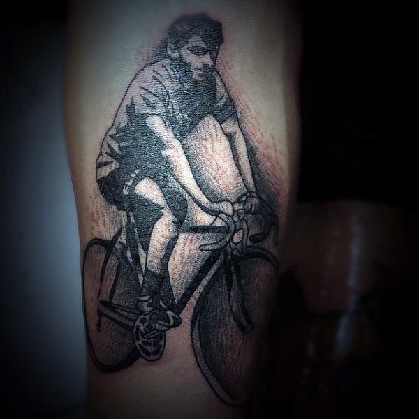 old school大腿骑自行车的男子黑白纹身图案