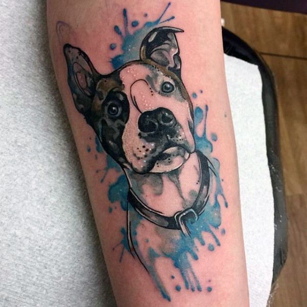 手臂有趣的卡通风格彩色可爱的狗纹身图案