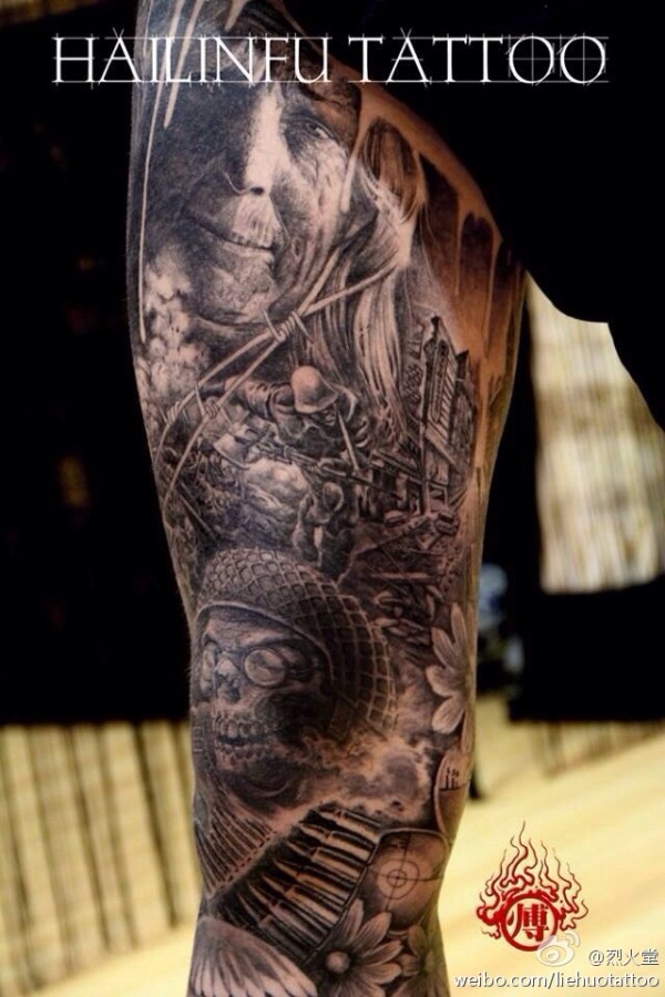 花腿纹身--一组大黑腿纹身图案作品欣赏