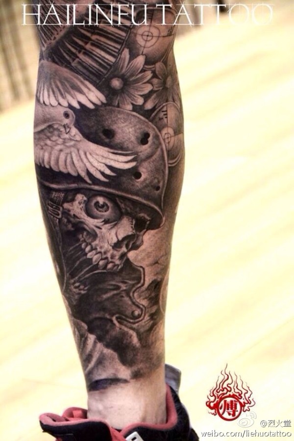 花腿纹身--一组大黑腿纹身图案作品欣赏