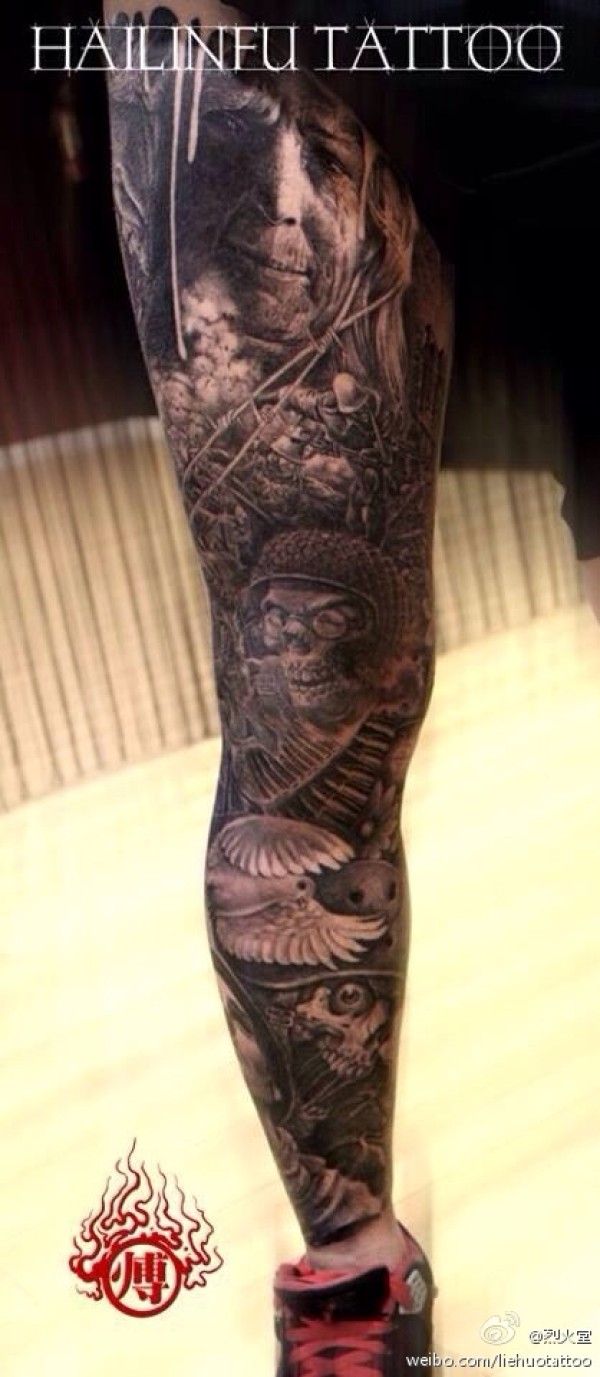 花腿纹身--一组大黑腿纹身图案作品欣赏